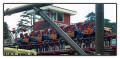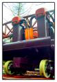 The train in the brake run. Tying in with the already apparent theming, the cars have a very striking "hot rod" image about them. |