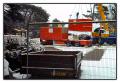 The trains have arrived! One, consisting of just two cars, is being winched around the circuit to make sure there are no problems with the track. |