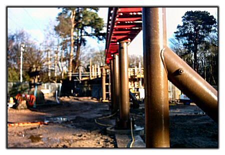 Looking from Rita's station area towards the first helix. You can see how people will be able to walk underneath the train roaring above.