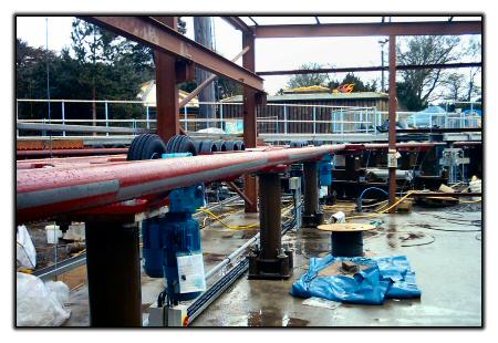 The inside of the maintenance shed, still under construction.
