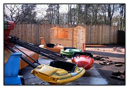 The "Bouncing Bugs" (formerly Ug Bugs in Ug Land) in their new location, as the operator cabin for the ride is constructed.