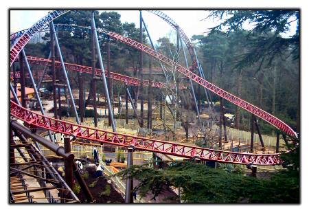 In this photo you can clearly see where the track "jumps" from a bright red colour to a pale green, after complaints about the ride being visible from a nearby village.