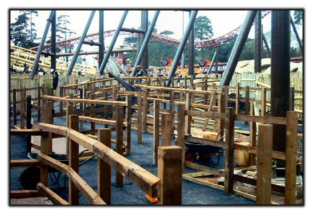 Another look at Rita's queue line, weaving around the ride's huge supports.