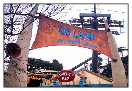 | Surprisingly, instead of the old Ug Land rock sign going back in place, there's a new banner instead, welcoming guests to "Ug Land and The Thunder Rock Rally, featuring Rita". |