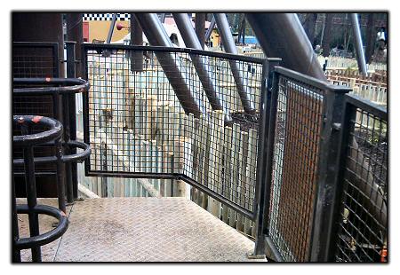 Here you can see where a corner of Corkscrew's platform has been cut out to make way for one of Rita's supports.