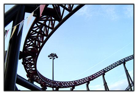 A nice shot of the track as it loops around Corkscrew's on-ride photo shop.