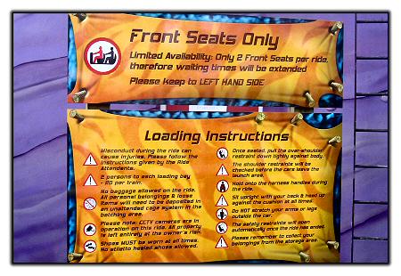 As you near the station from the queue line, this sign tells you the dos and the don'ts for the ride.