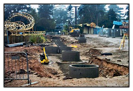 Looking down towards Rita's station area. Notice how small the digger looks next to the footers!