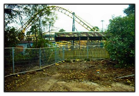 Looking towards Corkscrew's station from the area behind the on-ride photo booth.