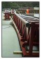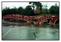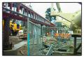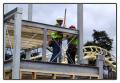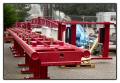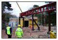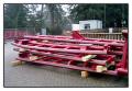 Steelwork in storage awaiting installation. This is a slightly lighter brown than that of the supports. Possibly for the station? |