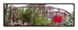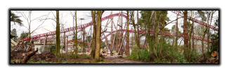 From the back of the construction site, we can see the now completed ride circuit The building towards the left of the photo is the Corkscrew on-ride photo shop.